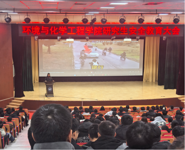 2025年11月15日上午9点,环境与化学工程学院在西校区大学生活动中心举办研究生安全教育大会,旨在加强校园交通秩序管理,提升师生安全意识,构建平安有序、文明和谐的校园环境。会议由环化学院副处级辅导员李莹老师主持,实验室中心副主任刘志伟老师、研究生辅导员李红冠分别就实验室安全与交通安全进行专题讲解,全院研究生积极参与。