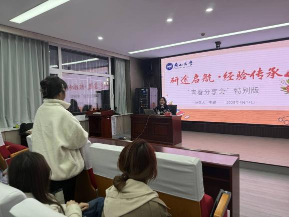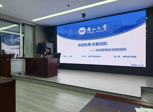 为激发学生科研热情,促进学术经验交流,2026年4月14日18时,环境与化学工程学院在里仁行政楼113室举办第六期“青春分享会”。本次活动邀请优秀博士研究生李娜担任主讲嘉宾,以“研途执笔·论著启航”为主题,围绕实验设计、科研写作、论文投稿等科研“全流程”进行深度分享。