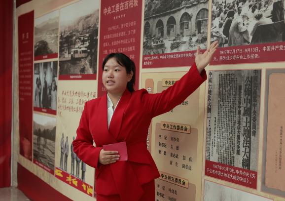 在“三大战役”展区,讲解员通过生动的讲述、详实的作战地图和珍贵的电报手稿,带领同学们走进那一段波澜壮阔的历史。大家直观感受到,在西柏坡这个小山村,党中央和毛主席指挥辽沈、淮海、平津三大战役,以高超的军事智慧和坚定的战略定力,实现了“运筹帷幄之中,决胜千里之外”的伟大壮举;在“七届二中全会”展区,“两个务必”的谆谆告诫——务必保持谦虚谨慎、不骄不躁的作风,务必保持艰苦奋斗的作风——让同学们深刻体会到中国共产党人面对执政考验时的清醒与自觉;在“全国土地会议”展区,《中国土地法大纲》这份纲领性文献,清晰展现了党领导土地改革、废除封建剥削制度的坚定决心,也印证了“一切为了群众、一切依靠群众”的根本立场,为解放战争的胜利奠定了坚实的群众基础。