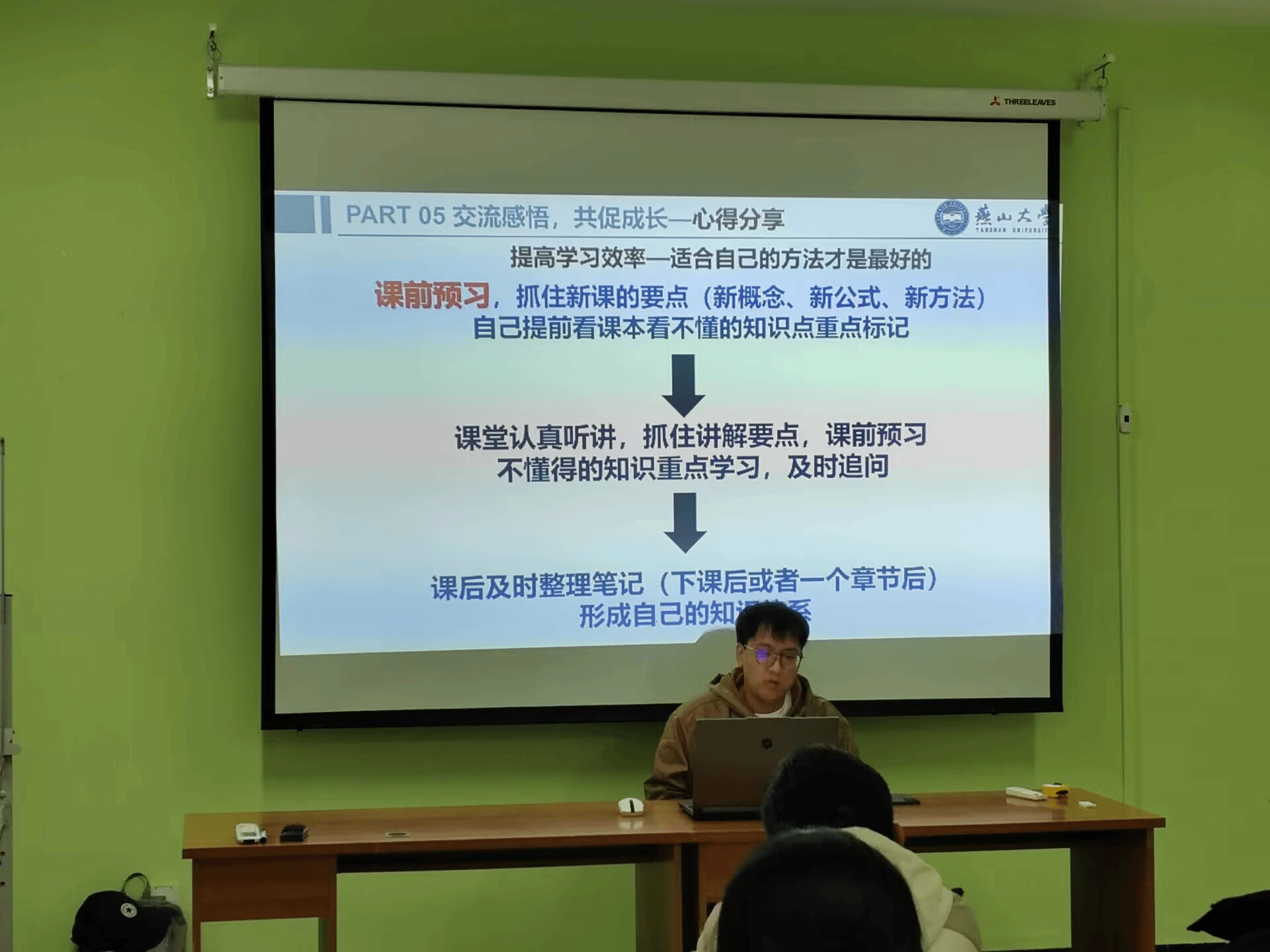 为进一步激励学生奋发进取、发挥榜样引领作用,环境与化学工程学院学生发展中心策划并举办了“国奖风采,榜样引领”系列活动。第三期活动于10月18日15:00在三组团“一站式”学生社区举行,邀请2022级本科能源化学专业国家奖学金获得者门泽同学,就日常学业与科研竞赛心得分享、怎样平衡日常学习工作与生活等方面对低年级同学进行交流分享。