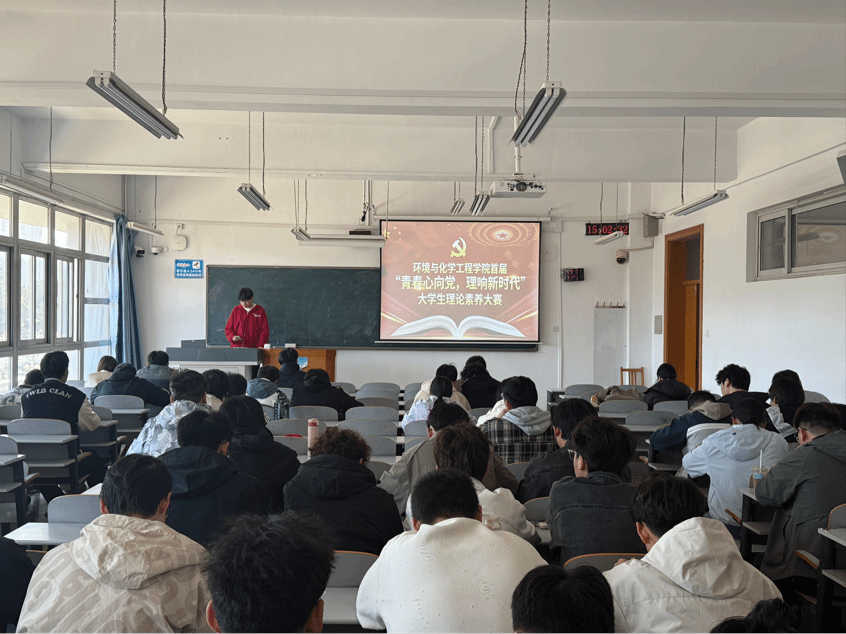 为深入学习贯彻习近平新时代中国特色社会主义思想,抢抓“十五五”规划开局关键节点,进一步深化青年大学生思想政治引领,提升学子理论素养与实践能力,环境与化学工程学院成功举办“青春心向党·理响新时代”首届大学生理论素养大赛。大赛设置理论考核与现场宣讲两大核心环节,全程紧扣主题、有序推进。