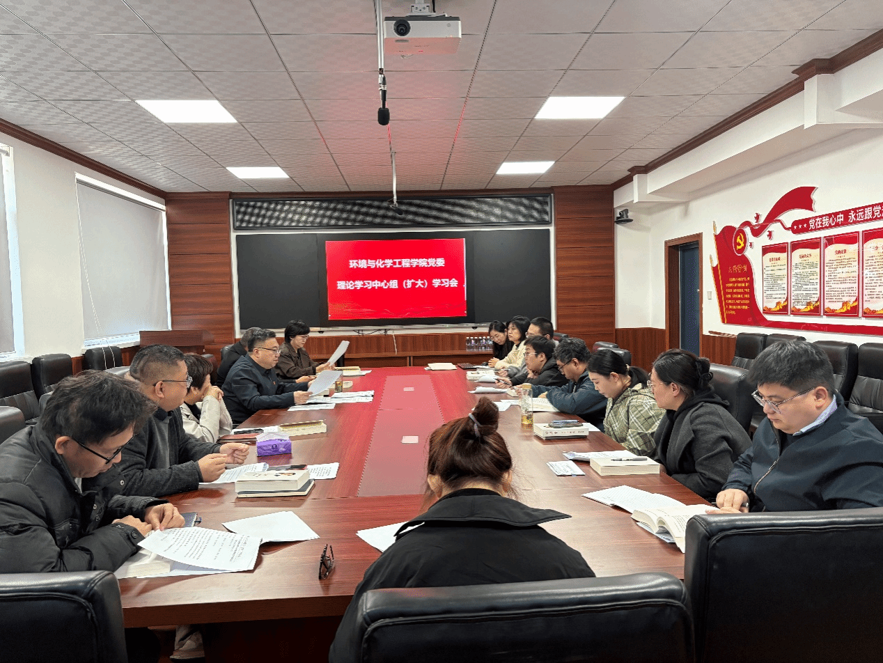 10月22日,环境与化学工程学院在世纪楼618会议室召开党委理论学习中心组(扩大)学习会。会议由学院党委书记严冰主持,学院党委理论学习中心组成员参加会议,学院科级干部、党支部书记列席会议。